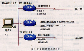 網(wǎng)絡(luò)技術(shù)是從1990年代中期發(fā)展起來的新技術(shù),它把互聯(lián)網(wǎng)上分散的資源融為有機整體,實現(xiàn)資源的全面共享和有機協(xié)作,使人們能夠透明地使用資源的整體能力并按需獲取信息。資源包括高性能計算機、存儲資源、數(shù)據(jù)資源、信息資源、知識資源、專家資源、大型數(shù)據(jù)庫、網(wǎng)絡(luò)、傳感器等。 當前的互聯(lián)網(wǎng)只限于信息共享,網(wǎng)絡(luò)則被認為是互聯(lián)網(wǎng)發(fā)展的第三階段。 對于IP網(wǎng)絡(luò)來說,Cisco的熱備份路由協(xié)議(HSRP, Hot Standby Routing Protocol)允許網(wǎng)絡(luò)在一個路由器失效不能工作時,網(wǎng)絡(luò)中的另一個路由器自動接管失效路由器,從而實現(xiàn)IP路由容錯。HSRP協(xié)議還允許兩個或多個配置HSRP協(xié)議的路由器使用一個虛擬路由器的MAC地址和IP地址。 虛擬路由器物理上并不存在,它表示一個能為它們提供備份容錯的公共路由器對象。圖1顯示了配置HSRP協(xié)議的廣域網(wǎng)中的北京網(wǎng)段。其中,每個物理路由器都配置了虛擬路由器的MAC地址和IP地址。 在圖1中,虛擬路由器的MAC地址是0000.0c07.ac01。當配置HSRP協(xié)議時,路由器自動地在Cisco IOS軟件的地址池中選擇一個虛擬MAC地址,該虛擬MAC地址在Cisco 公司的MAC地址塊范圍內(nèi)。以太網(wǎng)和FDDI局域網(wǎng)使用預(yù)先指定的MAC地址作為虛擬MAC地址,令牌環(huán)局域網(wǎng)使用一個功能地址作為虛擬MAC地址。 在圖1中,網(wǎng)絡(luò)192.1.1.0中的主機的缺省路由器沒有設(shè)置為路由器A,而設(shè)置為虛擬路由器的IP地址。當用戶A的工作站給位于廣州網(wǎng)段的用戶B的工作站發(fā)送數(shù)據(jù)包時,它將數(shù)據(jù)包發(fā)送到虛擬路由器的MAC地址。