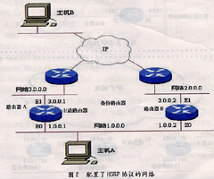 在圖1中,路由器A設(shè)置為主動路由器。它被配置為虛擬路由器的IP地址和MAC地址,所有發(fā)往虛擬路由器的數(shù)據(jù)包都經(jīng)由接口發(fā)送到廣州網(wǎng)段。作為備份路由器,路由器B也被配置為虛擬路由器的IP地址和MAC地址。如果由于某種原因路由器A停止轉(zhuǎn)發(fā)數(shù)據(jù)包,路由協(xié)議發(fā)生收斂,路由器B接管路由器A變?yōu)橹鲃勇酚善鳌R簿褪钦f,路由器B對虛擬MAC地址和虛擬IP地址進行反應(yīng)。用戶A的工作站繼續(xù)使用虛擬路由器的IP地址將數(shù)據(jù)包發(fā)往用戶B的工作站,路由器B接受這些數(shù)據(jù)包,并通過上海網(wǎng)段將其發(fā)送到廣州網(wǎng)段。直到路由器A重新工作,HSRP允許路由器B為北京網(wǎng)段的用戶提供不間斷的與廣州網(wǎng)段的用戶進行通信服務(wù)。當路由器B是主動路由器時,路由器B執(zhí)行正常功能:轉(zhuǎn)發(fā)北京網(wǎng)段和上海網(wǎng)段之間的數(shù)據(jù)包。 HSRP的工作原理 HSRP協(xié)議利用一個優(yōu)先級方案來決定哪個配置了HSRP協(xié)議的路由器成為默認的主動路由器。如果一個路由器的優(yōu)先級設(shè)置得比所有其他路由器的優(yōu)先級高,則該路由器成為主動路由器。路由器的缺省優(yōu)先級是100,所以如果只設(shè)置一個路由器的優(yōu)先級高于100,則該路由器將成為主動路由器。 通過在設(shè)置了HSRP協(xié)議的路由器之間廣播HSRP優(yōu)先級,HSRP協(xié)議選出當前的主動路由器。當在預(yù)先設(shè)定的一段時間內(nèi)主動路由器不能發(fā)送hello消息時,優(yōu)先級最高的備用路由器變?yōu)橹鲃勇酚善鳌B酚善髦g的包傳輸對網(wǎng)絡(luò)上的所有主機來說都是透明的。 配置了HSRP協(xié)議的路由器交換以下三種多點廣播消息: ◆Hello──hello消息通知其他路由器發(fā)送路由器的HSRP優(yōu)先級和狀態(tài)信息,HSRP路由器默認為每3秒鐘發(fā)送一個hello消息; ◆Coup──當一個備用路由器變?yōu)橐粋主動路由器時發(fā)送一個coup消息; ◆Resign──當主動路由器要宕機或者當有優(yōu)先級更高的路由器發(fā)送hello消息時,主動路由器發(fā)送一個resign消息。 在任一時刻,配置了HSRP協(xié)議的路由器處于以下四種狀態(tài)之一: ◆Active──路由器執(zhí)行包傳輸功能; ◆Standby──當主動路由器失效時路由器準備接管包傳輸功能; ◆Speaking and listening──路由器正在發(fā)送和監(jiān)聽hello消息; ◆Listening──路由器正在監(jiān)聽hello消息。 配置HSRP 圖2給出了一個IP網(wǎng)絡(luò)的拓撲結(jié)構(gòu)圖,其中兩個路由器配置了HSRP協(xié)議。