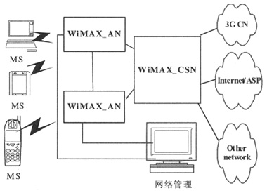 圖1 WiMAX網(wǎng)絡(luò)系統(tǒng)結(jié)構(gòu)