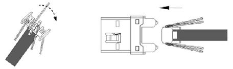 日海六類模塊增加了“分線架”設計,具有:降低施工難度,保證鏈路性能指標的作用。具體使用方法如下: 1)穿線功能 日海六類線纜開剝護套以后,按照右圖方式進行穿線,保證控制電纜護套剝開距離不超過13mm, 保證了從外皮到IDC 端子片卡接口之間露出的線對必須保持最小長度。 2)分線功能線纜經過穿線后,可根據打線方式,選擇T568A 或T568B 打線方式進行分線。