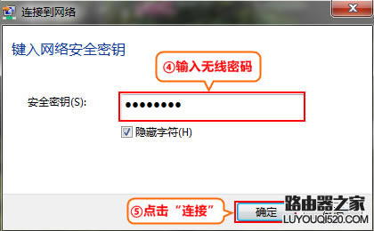 輸入無(wú)線密碼后,點(diǎn)擊確定