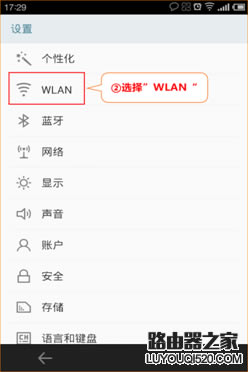 Android系統(tǒng): 打開(kāi)智能手機(jī)系統(tǒng)設(shè)置菜單-點(diǎn)擊WLAN” :
