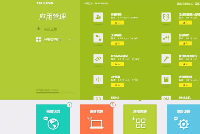 2.打開電腦/手機(jī)上的任何瀏覽器,登錄副路由器(弱電君就行tp-link以副路由器為例,一般默認(rèn)登錄地址為192.168.1.1)。 3.進(jìn)入副路由器后,點(diǎn)擊【應(yīng)用管理】——【無線橋】