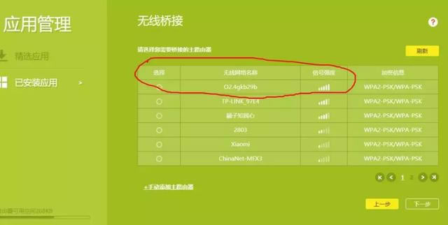 可以看到,主路由器wifi名稱在列表中。