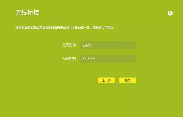 下一步是設置副路由器新的無線名稱和無線密碼。我們將無線名稱設置為c924記住這個名字(也可以隨意設置其他),然后保存。