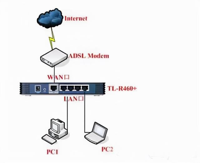 寬帶線〈—〉ADSL MODEM〈—〉(WAN口)R460 (LAN口)〈—〉電腦