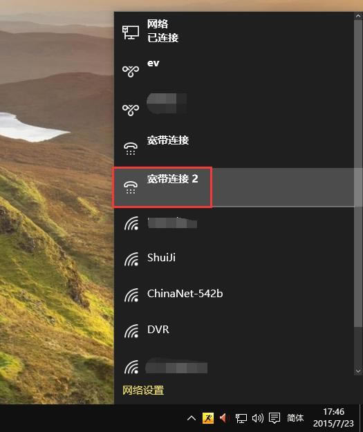 這一步非常重要,在這里輸入運寬商提供的用戶名和密碼。這個密碼必須是正確的,否則它將無法連接。 5.這次創建成功后,如果下次想用寬帶連接,可以在任務欄點擊網絡圖標,然后點擊【寬帶連接】拔號。