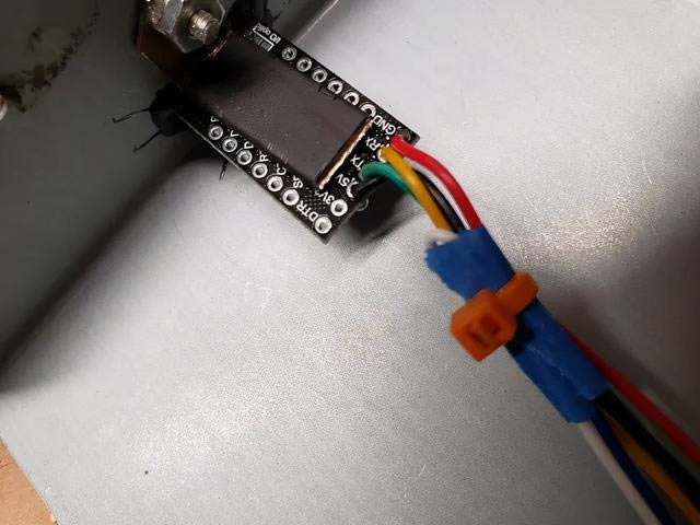 雖然其他不太詳細(xì)的指南似乎只需要TX,RX和GND引腳,但推薦UART我們還需要在串行適配器上連接5V總共使用4條線。6針尾纖剩下的兩根導(dǎo)線將來用,用膠帶綁好。