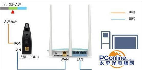 2.光釬焊用戶:用戶需要準備兩條網線,其中一條用于連接光貓和TP-Link TL-WR842N路由器的WAN另一條網線用于連接計算機TP-Link TL-WR842N路由器的LAN接口(1/2/3/4中的任何一個都可以)。