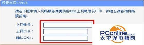 4.配置上網賬號:請根據ISP填寫運營商提供的寬帶用戶名和密碼填寫上網賬號和上網密碼——>;下一步。