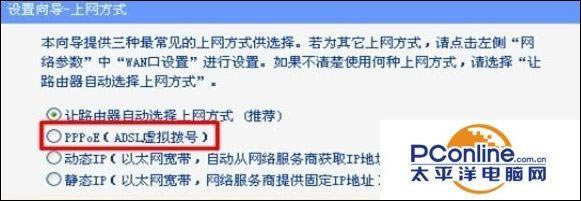 3.選擇上網方式:選擇PPPoE(ADSL虛擬撥號)——>;下一步。