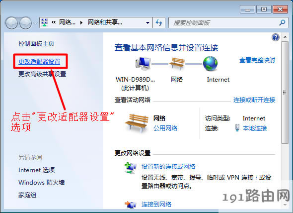 2、點(diǎn)擊“更改適配器設(shè)置”