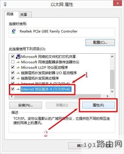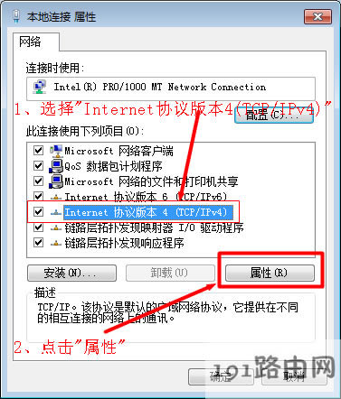 4、——>選擇“Internet協(xié)議版本4(TCP/IPv4)”,并點(diǎn)擊“屬性”。