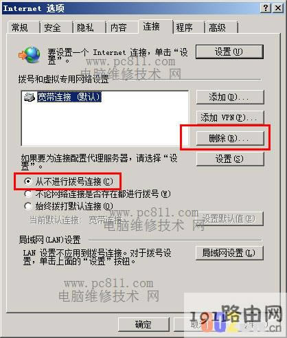 | 路由器(Router)是連接兩個或多個網絡的硬件設備,在網絡間起網關的作用,是讀取每一個數據包中的地址然后決定如何傳送的專用智能性的網絡設備。 原標題:"登錄192.168.1.1無法打開用戶名和密碼"的相關路由192.168.1.1登錄設置教程。來源 - 本站。 IE上網設置代理第1步:正常打開ie瀏覽器器,并在ie瀏覽器工具欄中找到并打開ie瀏覽器選項。 第2步:在打開的ie瀏覽器選項卡中找到并單擊“連接”。 ![]() 第3步:在打開的“局域網(LAN)設置”窗口中,把“為LAN使用代理.....”前面的勾去掉。 ![]() 路由器LAN接口故障有時是因為路由器LAN接口出現故障,可以嘗試著把網線的水晶頭拔了換另一個LAN接口試一下,插好之后,看一下路由器上的LAN提示燈是否亮著? IE寬帶拔號連接設置有時有些網友上網是使用IE的寬帶連接,一般是不需要這個的,我們可以把這個刪除掉。 第1步:正常打開ie瀏覽器器,并在ie瀏覽器工具欄中找到并打開ie瀏覽器選項。 第2步:在打開的ie瀏覽器選項卡中找到并單擊“連接”。 ![]() 第3步:在連接選項卡中找到"寬帶連接"并刪除,然后選擇“從不進行拔號連接”并確定。 ![]() 網段不同一般來說,默認路由器都會自動分配IP地址,如192.168.1.1的網關路由器,都會分配192.168.1.2到192.168.1.255之間的數字。如果路由器設置了不自動分配,那么可能是因為自己電腦沒有ip地址,我們只需要把IP地址設置成和路由器同一網段即可。有關Windows系統具體的設置IP地址方法,這里就不詳細說明,大家可查閱《ip地址設置方法》。 ![]() 路由器卡死/假死有時天氣過熱,或路由器本身質量不好,或是線路等一些原因導致路由器假死或是死機的情況,大家可嘗試把路由器的電源給拔掉,再插上,等一分鐘有時就好了。 路由器登錄地址錯誤有些路由器是需要輸出端口才能正常登錄,這個商品默認就是80(不需要輸出就直接登錄),如果在路由器控制界面已經修改過登錄登錄端口,就必須加上修改過的商品如“192.168.1.1:端口號”才能登錄。 以上方法均無法解決,可嘗試使用把路由器恢復出廠設置,有關恢復出廠設置方法,本文不在詳細說明. 路由器不僅讓你更穩定快速地連接無線網絡,更可以讓家中的智能設備連接在一起。 |