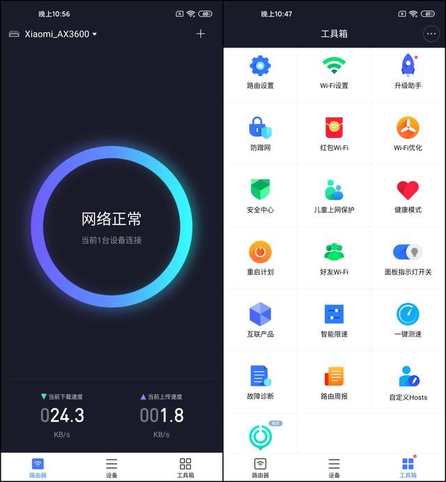 ![]() 在小米10系列手機發布會上,除了發布手機,小米還發布了第一個支持Wi-Fi 6的AloT路由器:AX3600。每個人都應該知道,你想體驗一下Wi-Fi 6的話除了路由器要支持外,手機也需要支持,所以我認為小米發布這款路由器有一些部分原因可能是為了讓那些入手小米10系列的手機用戶能夠體驗到Wi-Fi 6。畢竟,我從小米10或小米10開始 Pro發現家里的路由器不支持Wi-Fi 6.其他品牌Wi-Fi 6路由器太貴,不支持米家怎么辦?而入手AX3600可以解決所有這些問題。 目前,我個人也是第一次體驗AX3600大概一周了,那么這個路由器的體驗如何呢?下面和大家分享一下。AX簡單開箱體驗3600。 ![]() 小米AloT路由器AX3600的包裝有點大,打開包裝后可以直接看到AX路由器本體3600。另外,AX目前3600只有黑色版本,但不排除后續會推出其他顏色。 ![]() 至于配件,AX3600出廠共標配網線,12V/2A電源適配器及使用說明書。 值得一提的是,AX3600電源適配器采用磨砂工藝外殼,我想給大家一個贊。因為以前經歷過的一些路由器在電源適配器外殼上使用高光技術,這種設計很好看,但很容易劃傷和灰色,不方便磨砂外殼,我不喜歡高光技術。 ![]() 小米AloT路由器AX3600的外觀采用了三棱柱的形狀,整體看起來很有個性。畢竟,在我接觸過的路由器中,我基本上沒有看到它AX同樣形狀的3600設計。 除了有點引人注目的外觀,小米AloT路由器AX7天線設計的3600也相當搶眼。其實AX7個天線中有6個是高性能信號放大器(2).4GHz頻段兩根、5GHz四個頻段),小米官方表示沒有遮擋,AX3600的無線信號可以覆蓋兩個足球場。 ![]() 剩下的天線是AloT智能天線設計在許多天線的中間,為了區分我們也可以看到AloT智能天線的頂部有一個LED提示燈。這個天線的主要功能是讓用戶打開米家App后,可以自動發現身邊沒有初始化的小米智能設備,使其可以一鍵輕松入網,無需輸入密碼進行繁瑣的連接設置。 ![]() 小米AloT路由器AX3600整機外殼也采用磨砂工藝。路由器等硬件安裝后可能不會一輩子移動。隨著時間的推移,灰塵將不可避免地積聚,磨砂外殼更容易處理。 ![]() 小米AloT路由器AX3600的正面也有INTERNET及SYSTEM實時檢查路由器狀態的兩個指示燈。 ![]() 小米散熱AloT路由器AX3600在整機下方采用鏤空設計,保證其散熱效果。但就我個人而言,我覺得這個空心區域更多,如果多年積灰,可能很難照顧。 ![]() 另外,小米AloT路由器AX3600還在機身頂部設計了一個水平金屬部件來加速熱傳導,機身還使用了大面積的鋁合金散熱器和高導熱性導熱膠,以實現強散熱效果,確保路由器的穩定運行。 ![]() 小米AloT路由器AX實拍3600側面設計細節。 ![]() 小米AloT路由器AX3600的底部還有大量的空心散熱孔,還有四個硅膠墊,以確保路由器的防滑效果,但也支持路由器不直接接觸桌面,為底部的散熱孔留下一定的散熱空間。 ![]() 在路由器的后面,我們可以看到這里有許多接口。小米AloT路由器AX3600共設有1個WAN網口、3個LAN網口、電源接口和RESET重置鍵。同時,這四個網口都支持千兆網速。 在配置方面,AX3600搭載了高通4核64位A53 CPU,以及雙核網絡加速引擎NPU,可大大提高網絡流量的處理速度。而AX3600的ROM為256MB,內存為512MB。與此同時,小米官員還表示,512MB大內存可同時支持多達248臺設備,保證多人場景的使用需求。 ![]() 不過,AX3600網口沒有設計成盲插,WAN網口沒有用顏色來區分。對于新手小白用戶來說,如果一時分不清,很容易插錯。還有一點就是AX3600沒有USB接口代表U盤等設備不能外接。 總的來說,小米AloT路由器AX3600整機略大,占用空間一點,但就外觀設計而言,AX3600還是挺有個性的吧?特別是獨立的AloT設計智能天線真的很少見。在談到外觀設計之后,讓我們簡體驗。 ![]() 將小米AloT路由器AX3600接通電源并連接上網線后,基本上AX3600安裝完成。AX3600的網絡設置也很簡單,當AX3600啟動后,將生成無密碼的產品Wi-Fi此時,該網絡可以通過手機連接,并根據上網導向設置正常使用AX3600了。整個設置過程非常簡單,新手小白可以根據操作提示輕松完成網絡設置。 ![]() 想要更完整的體驗AX3600,還需要AX3600跟小米WiFi App綁定過程簡單易行,這里就不詳細說明了。綁定OK后,就可以在App界面上看到AX3600的運行、連接設備和所有功能。 ![]() 必須通過某些功能App可設置,如系統升級、網絡設置、Wi-Fi設置等。小米值得一提AloT路由器AX3600支持雙頻合一功能,即2.4GHz頻段跟5GHz合成一個頻段Wi-Fi網絡和雙頻終端將通過當前環境自由選擇合適的頻段訪問。例如,如果信號不好,則選擇穿墻的頻段,但此功能需要App中開啟。 ![]() 同時,AX3600的Wi-Fi6(802.11ax)模式以及MU-MIMO、Alot智能天線自動掃描等App設置在中間。而至于MU-MIMO是什么呢?事實上,該技術可以使路由器的多個天線同時服務于多個設備,使每個設備都能達到優先處理的待遇,不會有低速設備影響其他設備的體驗,使多個設備更順暢地上網。 另外,通過以上App我們也可以看到截圖AX3600支持四種加密方法和新一代WPA加密,大大增加了網絡破解的難度。 ![]() 小米AloT路由器AX3600具有防蹭網、兒童上網保護等一些很好的實用功能Wi-Fi優化、健康模式、定期重啟、智能限速等。像兒童上網保護,可以設置某臺連網設備只能在固定時間段上網以及可訪問的網址范圍。總之都是實用功能,這里就不給大家全部演示了。 ![]() 另外,如果你喜歡玩游戲,小米AloT路由器AX無論是手機游戲還是手機游戲,3600還支