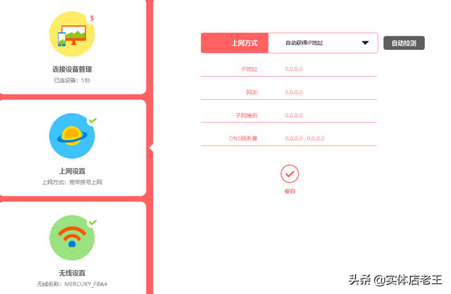 隨著網絡的普及,人們對上網環境的要求越來越高,而為了滿足每個家庭多個設備上網的需求,就需要安裝設置一個或多個路由器。但是很多朋友不知道如何安裝或設置路由器,這篇文章教你如何安裝路由器。 ![]() 路由器概述 事實上,路由器相當于網絡分發設備,我們不需要專業術語來回答,只說白話。當我們去網絡運營商購買相應的帶寬寬帶時,受設備限制,我們只能連接一臺或多臺計算機,但擴展其他設備需要連接額外的路由器,路由器的功能是擴展連接網絡的端口和方式,通過路由器連接到網絡上的所有設備共享寬帶。 路由器的安裝和設置實際上是根據不同的網絡增加網絡端口和上網方式。 ![]() 安裝路由器 安裝路由器的方式和連接方式有很多種。通常,我們安裝路由器最常用的方法是有線連接。我們需要一條網線將路由器與貓串聯起來,然后在網上完成設置。 然而,在一些特殊環境下,路由器實際上可以使用無線連接,但與有線連接相比,無線連接不是很穩定。如果網絡本身波動較大,可能會出現斷網和丟包的現象。此外,由于家庭環境的限制,有線安裝是大多數用戶的首選。 安裝方法并沒有想象的那么復雜,就是直接找一根網線,一段插入光貓網線插座,另一端連接到路由器。WAN嘴上就可以了。 從路由器的LAN口可以連接到電腦的網卡端口。 ![]() 圖為水星路由器設置界面 很多人會連接路由器,但他們不會設置路由器。接下來,讓我們談談如何設置路由器。前面提到了連接路由器的方法和方法,實際上已經完成了路由器的設置。 要知道路由器設置的前提是先連接到計算機或手機網絡,前者需要有線連接,后者需要無線連接,一般路由器默認無線無密碼,我們也可以通過手機設置路由器,手機界面小,許多用戶使用不方便。接下來,讓我們談談如何使用計算機有線連接來設置路由器。 每個路由器都有默認網關,大多數路由器的默認網關是192.168.1.1或192.168.0.1.要設置路由器,首先要確定路由器的默認網關是什么。除了一些非常特殊的路由器外,大多數路由器都是這兩個,通常標記在路由器背面的說明書上(路由器的帳戶密碼也寫在上面,通常默認admin,賬號密碼相同) 在確定默認網關后,直接打開電腦上的任何瀏覽器,然后輸入路由器的默認網關,然后輸入密碼,選擇撥號,自動獲取IP、靜態IP等待上網方式連接,即可完成設置。 ![]() 三、安裝注意事項 現在光貓有兩種,沒有路由功能,設置路由器時使用撥號連接;如果有路由功能,可以使用DHCP自動獲取功能連接;如果辦理寬帶時購買的靜態IP,使用路由器的靜態IP連接網絡的功能設置。 此外,在設置路由器之前,最好使用計算機的寬帶撥號來測試網絡是否正常,以避免寬帶本身的問題,導致路由器設置后無法上網。 此外,在設置路由器之前,最好使用計算機的寬帶撥號來測試網絡是否正常,以避免寬帶本身的問題,導致路由器設置后無法上網。 以上是路由器安裝設置的一般情況。只要你知道單詞,理解能力不差,即使是電腦小白也能輕松完成。路由器不僅讓你更穩定快速地連接無線網絡,更可以讓家中的智能設備連接在一起。 |