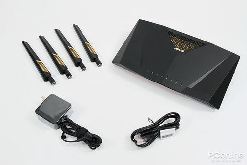 ▲包裝盒清單,一個(gè)電源,一條超五類網(wǎng)線,四條可拆卸天線,華碩RT-AX88U機(jī)身。