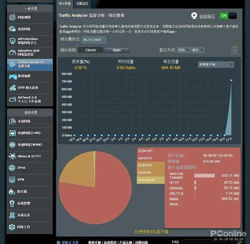 ▲打開流量分析后,可以分析網(wǎng)絡(luò)流量,以直觀的曲線圖呈現(xiàn)結(jié)果。