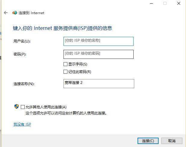 這一步非常重要,在這里輸入運寬商提供的用戶名和密碼。這個密碼必須是正確的,否則它將無法連接。 5.這次創建成功后,如果下次想用寬帶連接,可以在任務欄點擊網絡圖標,然后點擊【寬帶連接】拔號。