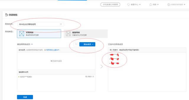 綁定成功后,我需要選擇組網(wǎng)。在創(chuàng)建網(wǎng)絡(luò)私有云時(shí),我們首先需要在網(wǎng)絡(luò)名稱(chēng)中創(chuàng)建一個(gè)名稱(chēng)。如果是企業(yè)辦公室,可分為物流組、軟件開(kāi)發(fā)組、設(shè)計(jì)藝術(shù)組等。然后我們需要點(diǎn)擊藍(lán)色標(biāo)志的添加成員。免費(fèi)用戶(hù)允許三哥網(wǎng)絡(luò)成員,包括其他蒲公英路由器或軟件客戶(hù)端。