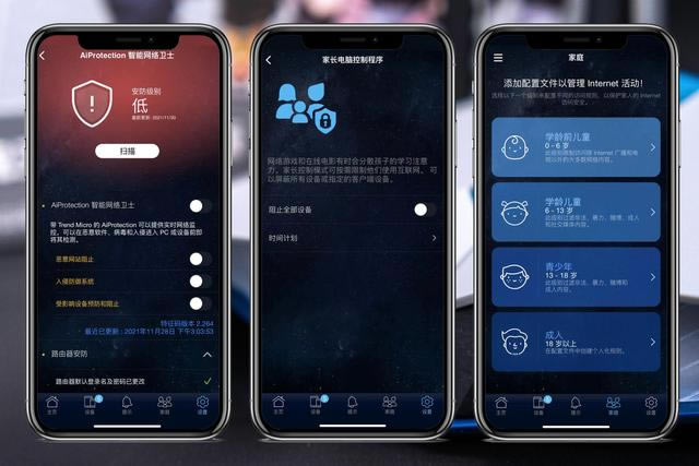 網絡防護 這款AX82U鬼滅之刃的網絡防護功能也值得一提。比如家里有孩子的用戶,不同年齡的孩子可能會用手機玩游戲,用平板上網課,瀏覽網頁,但各種垃圾廣告、信息、木馬病毒無處不在。即使是熟悉計算機的用戶也可能無所不能,AX82U除了提供AiProtectionPro除了三重網絡保護,新一代也融合了WPA3.安全標準和趨勢技術終身免費安全數據庫。同時,家長可以根據孩子的年齡和使用需要限制和屏蔽接入設備,避免分散孩子的學習注意力。 ![]()