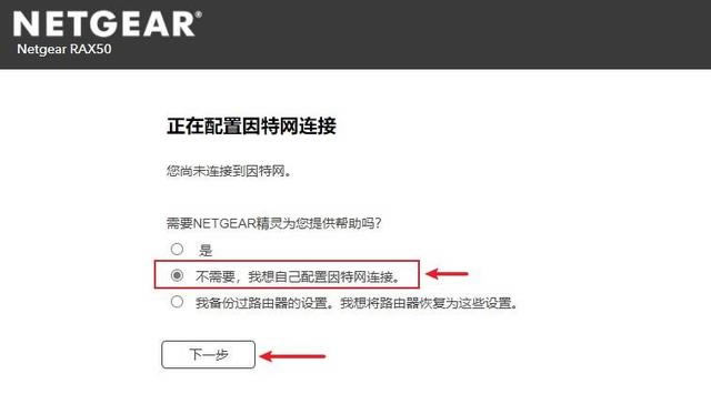 我們在瀏覽器,輸入 192.168.1.1 ,您可以登錄網件的后臺頁面! 因為我不習慣使用手機來初始化路由器,所以我仍然使用傳統的計算機初始化,事實上,網絡也提供了一個非常方便的連接方式,插入電源后,手機直接搜索wifi可初始化。 無需智能手機初始化,我們點擊底部: