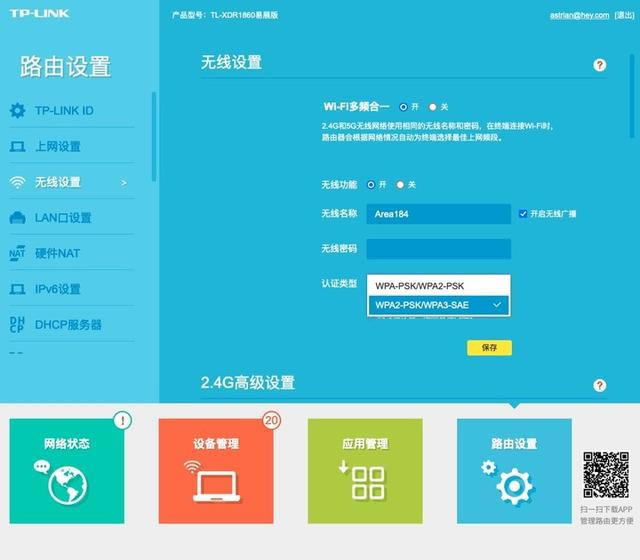 ▲ 通過 NFC 快速連接標簽 Wi-Fi. 以后會單獨講實現方法 今天,愛扇從最基本的密碼設置開始,一步一步地教你如何加強你的家 Wi-Fi 網絡安全。 基礎設置篇工欲善其事,必先利其器。想加強你的 Wi-Fi 從加密協議和密碼強度開始。 1. 使用 WPA2 或 WPA3 等強加密協議 目前主流有三種 Wi-Fi 網絡加密手段有線等效加密(WEP)、Wi-Fi 訪問保護(WPA),其中 WPA 還迭代到第二代和第三代。雖然舊設備仍在使用 WEP 但由于發現了嚴重的安全漏洞,默認被視為不安全的加密手段。 通常來說,目前新推出的 Wi-Fi AP(訪問熱點)設備的加密默認值 WPA2。假如你想檢查你的 Wi-Fi 網絡加密協議絡加密協議 Wi-Fi AP 或無線路由器(以下簡稱)「Wi-Fi 設備」)修改或檢查。以更新為主 TP-LINK 以路由器為例: 連接設備 Wi-Fi 設備網絡,從瀏覽器打開路由器設置頁面,點擊底部「路由設置」,進入「無線設置」在右側「無線設置」部分找到「認證類型」,確保選擇「WPA2-PSK / WPA3-SAE」,點擊保存即可