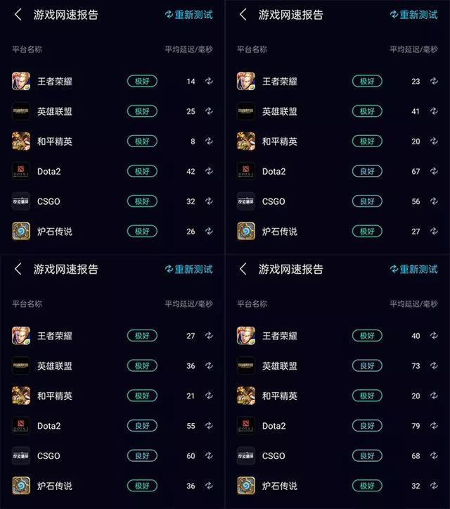 接下來是游戲延遲測試,可以看到 BC 點的延遲與 A 相比之下,點有一定的增加。而在 D 點不僅延遲較高,還會經(jīng)常出現(xiàn) 100 延遲對正常游戲影響很大。