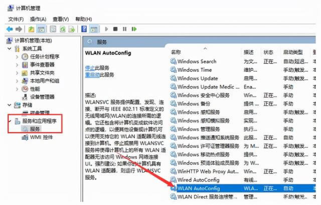 3.如果驅動程序沒有問題,請啟動服務和應用程序,單擊服務找到WLAN自動配置,然后單擊左上角啟動服務。