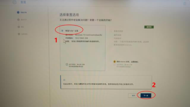 進入還原界面后,選擇開始重置。