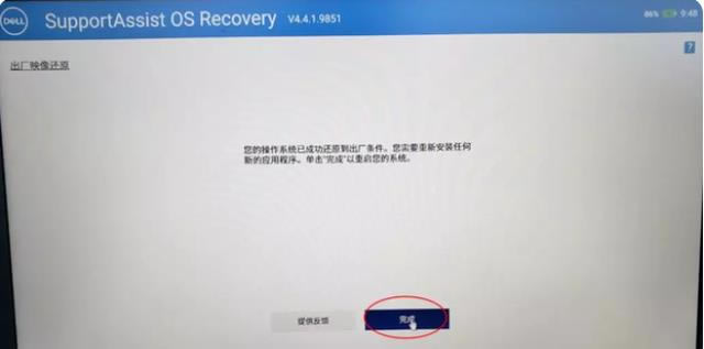 10.提示恢復成功后,點擊完成重啟計算機,初始設置系統(tǒng)并進入桌面。