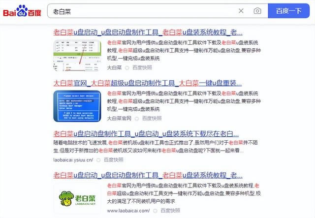 u盤安裝原版win7系統,今天先教你u盤啟動和下載系統教程 首先打開瀏覽器,然后百度搜索白菜回車,選擇第一個打開 ![]()