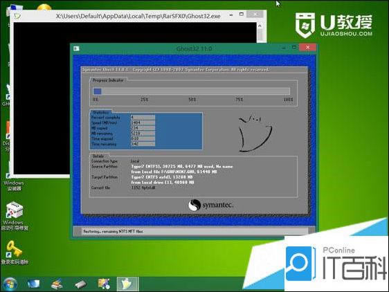 5、此時會提醒用戶刪除C盤數(shù)據(jù),點擊進(jìn)入以下界面,復(fù)制系統(tǒng)圖像;