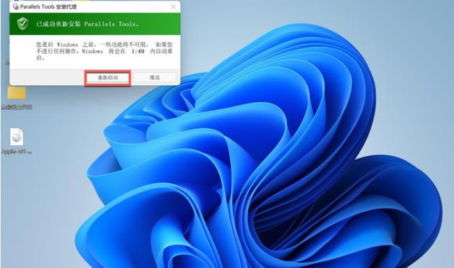 9.多次重啟后,進入Win計算機將自動更新11系統Parallels Tools,等幾分鐘。