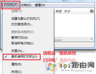 現象3:Win7系統下,打印機提示脫機打印