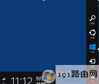 1、將鼠標移動到屏幕的右上角或者右下角,當出現菜單時,點擊[設置];