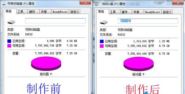如上圖所示就是在制作啟動u盤前后容量的變化情況!