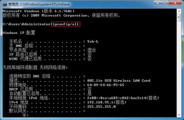 Windows 7,中文名稱視窗7,是由微軟公司(Microsoft)開發(fā)的操作系統(tǒng),內(nèi)核版本號為Windows NT 6.1。Windows 7可供家庭及商業(yè)工作環(huán)境:筆記本電腦 、平板電腦 、多媒體中心等使用。和同為NT6成員的Windows Vista一脈相承,Windows 7繼承了包括Aero風(fēng)格等多項功能,并且在此基礎(chǔ)上增添了些許功能。 很多剛開始使用windows7系統(tǒng)的朋友不知道w7的ip地址在哪。w7的ip地址在哪?小編教你怎么查看w7的ip地址。今天小編就帶來了兩種非常簡單查看w7的ip地址的方法供大家學(xué)習(xí)。w7的ip地址在哪的詳細方法教程就在下面。希望對大家都有幫助。 有兩種方式可以查看: A、直接通過網(wǎng)絡(luò)圖標(biāo)本地屬性查看; B、通過運行命令提示符進行查看。 具體操作如下: 1.通過網(wǎng)絡(luò)圖標(biāo)本地屬性查看:右鍵桌面右下角的網(wǎng)絡(luò)圖標(biāo) — 點擊打開共享和網(wǎng)絡(luò)中心 — 本地連接 — 詳細信息 就能查看到電腦的IP地址。  w7的ip地址在哪教程圖一  w7的ip地址在哪教程圖二 2.通過運行命令提示符進行查看:同時按win+R鍵,在彈框里輸入CMD后enter,再輸入ipconfig/all,就能夠看到ip地址。  w7的ip地址在哪教程圖三  w7的ip地址在哪教程圖四  w7的ip地址在哪教程圖五 以上就是w7的ip地址在哪的教程了。使用了小編教的兩種方法以后是不是很快就掌握了這個方法和查到了自己的ip地址。