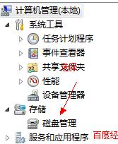 磁盤分區教程圖3 選擇“磁盤“》》”存儲管理“,打開”磁盤管理“頁面 如圖: