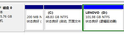 磁盤分區教程圖8 壓縮后會發現多出一塊 未分區磁盤(綠色分區)