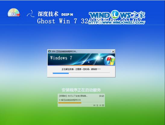 Windows 7,中文名稱視窗7,是由微軟公司(Microsoft)開(kāi)發(fā)的操作系統(tǒng),內(nèi)核版本號(hào)為Windows NT 6.1。Windows 7可供家庭及商業(yè)工作環(huán)境:筆記本電腦 、平板電腦 、多媒體中心等使用。和同為NT6成員的Windows Vista一脈相承,Windows 7繼承了包括Aero風(fēng)格等多項(xiàng)功能,并且在此基礎(chǔ)上增添了些許功能。 深度技術(shù)win7旗艦版安裝,很多人還不會(huì),電腦系統(tǒng)用久了,會(huì)出現(xiàn)一系列問(wèn)題,比如電腦運(yùn)行速度變慢,系統(tǒng)奔潰,那么就需要安裝系統(tǒng)解決這樣的問(wèn)題,針對(duì)網(wǎng)友這樣的問(wèn)題,就讓小編告訴大家深度技術(shù)win7旗艦版安裝簡(jiǎn)單實(shí)用的方法吧。 深度技術(shù)win7旗艦版安裝簡(jiǎn)單實(shí)用的方法: 1、打開(kāi)下載的系統(tǒng)鏡像文件,右擊選擇“解壓到Deepin_Win7SP1_Ultimate_X86_201407.iso”。如圖1所示  深度技術(shù)win7旗艦版安裝簡(jiǎn)單實(shí)用的方法圖1 2、雙擊“setup.exe”.如圖2所示  深度技術(shù)win7旗艦版安裝簡(jiǎn)單實(shí)用的方法圖2 3、點(diǎn)擊“安裝WIN7X86系統(tǒng)第一硬盤(pán)分區(qū)”。如圖3所示  深度技術(shù)win7旗艦版安裝簡(jiǎn)單實(shí)用的方法圖3 4、選擇“安裝”,再按“確定”。如圖4所示,按“確定”,如圖5所示。點(diǎn)擊“打開(kāi)”之后選擇映像文件(擴(kuò)展名為.iso),最后選擇“確定”。如圖6所示  深度技術(shù)win7旗艦版安裝簡(jiǎn)單實(shí)用的方法圖4  深度技術(shù)win7旗艦版安裝簡(jiǎn)單實(shí)用的方法圖5  深度技術(shù)win7旗艦版安裝簡(jiǎn)單實(shí)用的方法圖6 5、選擇“是”,立即重啟。如圖7所示  深度技術(shù)win7旗艦版安裝簡(jiǎn)單實(shí)用的方法圖7 6、因?yàn)槭峭耆詣?dòng)進(jìn)行安裝的,所以安裝過(guò)程相關(guān)順序這里不做一一解釋。我們耐心等待硬盤(pán)裝win7系統(tǒng)完成即可。如圖8、圖9、圖10所示:  深度技術(shù)win7旗艦版安裝簡(jiǎn)單實(shí)用的方法圖8  深度技術(shù)win7旗艦版安裝簡(jiǎn)單實(shí)用的方法圖9  深度技術(shù)win7旗艦版安裝簡(jiǎn)單實(shí)用的方法圖10 7、重啟后,系統(tǒng)就安裝好了,如圖11所示  深度技術(shù)win7旗艦版安裝簡(jiǎn)單實(shí)用的方法圖11 以上就是深度技術(shù)win7旗艦版安裝簡(jiǎn)單實(shí)用的方法,這就是小編幫你們整理的安裝系統(tǒng)的文章了,不要看圖文教程過(guò)長(zhǎng),其實(shí)操作起來(lái)很簡(jiǎn)單的,這種方法不需要任何工具,只要有一個(gè)系統(tǒng)鏡像文件,就可以裝win7系統(tǒng)了哦,希望大家學(xué)會(huì)了。 相關(guān)文章: 最新win8安裝教程分享 最新win8系統(tǒng)64位純凈版下載 最新電腦公司xp系統(tǒng)下載 最新系統(tǒng)之家win8 32位系統(tǒng)下載純凈版