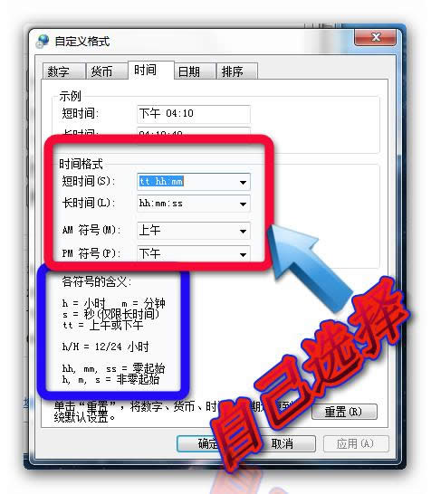 【改用12小時制】 Windows7系統中,系統時鐘默認采用24小時制,如果不習慣,可以改成12小時制。單擊“日期和時間設置”窗口左下角“更改日歷設置”,彈出“自定義格式”窗口,切換到“時間”選項卡,將“時間格式”欄中表示24小時制的“H”改為表示12小時制的“h”,并且在前面加上表示上午和下午的“tt”,例如:短時間改為“tt:h:mm”(不含雙引號),長時間改為“tt:h:mm:ss”(不含雙引號),最后單擊“確定”按鈕,保存設置,這樣就可以把系統默認的24小時制改為12小時制