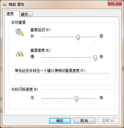 2、修改延遲與速度在”字符重復"選項組 內向右拖動調節(jié)滑塊到合適位置,調整字符的重復延遲與重復速度。