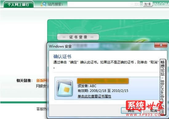 目前在Windows 7用 USBKey 登陸網銀在確認證書后