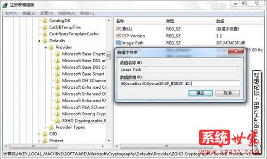 由此可看出,注冊表中少的是 GP_MINCSP.dll 的文件夾位置