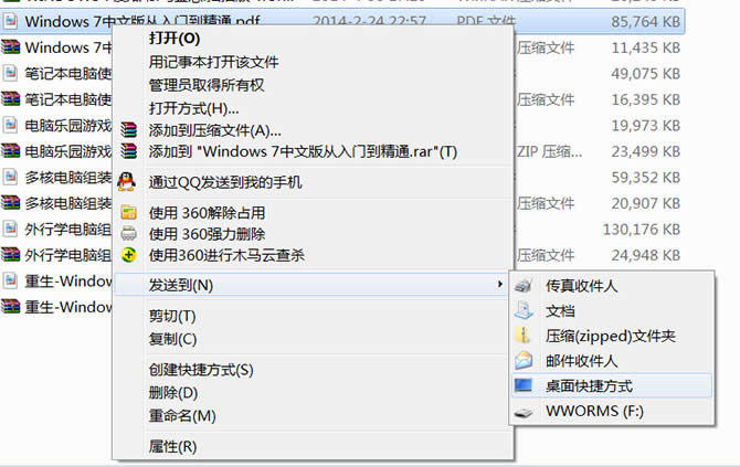 選擇“桌面快捷方式”命令右擊需要在桌面創建快捷方式的文件,在彈出的快捷菜單中 選擇"發送到桌面快捷方式"命令。 選擇“粘貼快捷方式”命令用戶也可右 擊需要查看快捷方式這時,即可在桌面上創建該文件的快捷方式,與文件的不同之處在于,快捷方式圖標的左下角會有一個箭頭標志。 windows 7 的設計主要圍繞五個重點——針對筆記本電腦的特有設計;基于應用服務的設計;用戶的個性化;視聽娛樂的優化;用戶易用性的新引擎。 跳躍列表,系統故障快速修復等,這些新功能令Windows 7成為最易用的Windows。 |