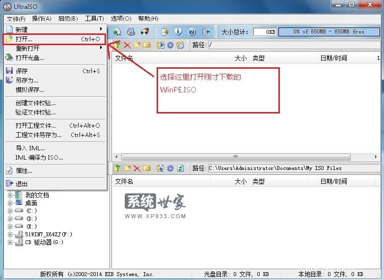 WinPE(老毛桃U盤啟動制作軟件)下載地址: 安裝ultraiso,沒有什么需要注意的,一直點下一步即可,安裝完成后打開 打開ultraiso之后,選擇文件--打開--選擇剛才下載的WinPE.ISO,如圖