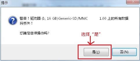 然后就會提示你確認繼續操作嗎? 選擇是 注意:確認后,U盤就會先格式化,如果你有重要文件,請提前備份。