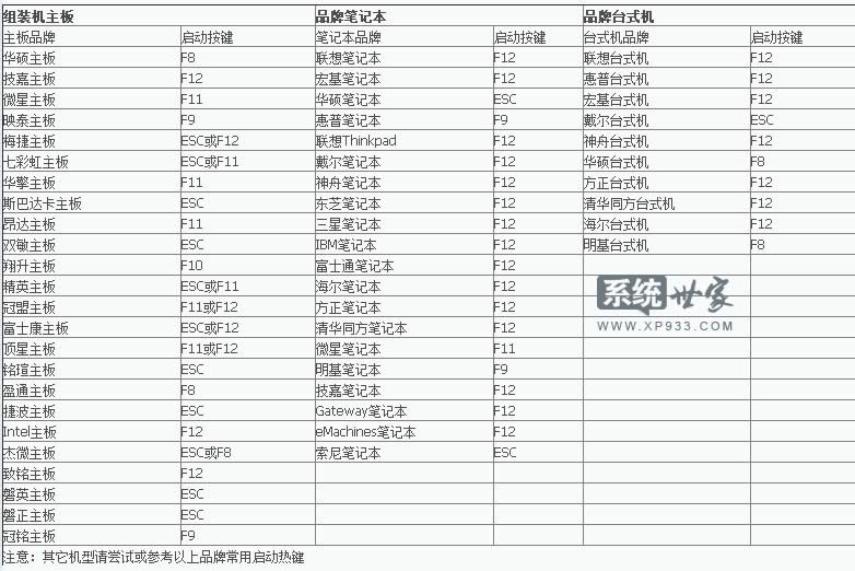 然后就等待寫入完成,完成后會有提示。 下載Win7系統鏡像,并將下載好的Win7系統鏡像復制到U盤 (復制到U盤的哪里都行,接下來還要用,只要你自己能找到在哪就行) (推薦下載64位,但是如果你的U盤只有4G的話,請下載32位版本,裝好之后可以重裝為64位的。) 都做好了以后,把U盤拔下來吧,接下來要開始為你的電腦裝Win7系統了。 EN 系統進不去怎么重裝--U盤啟動 插入U盤,按U盤啟動按鍵啟動U盤 不同品牌啟動按鍵不同,參考下圖