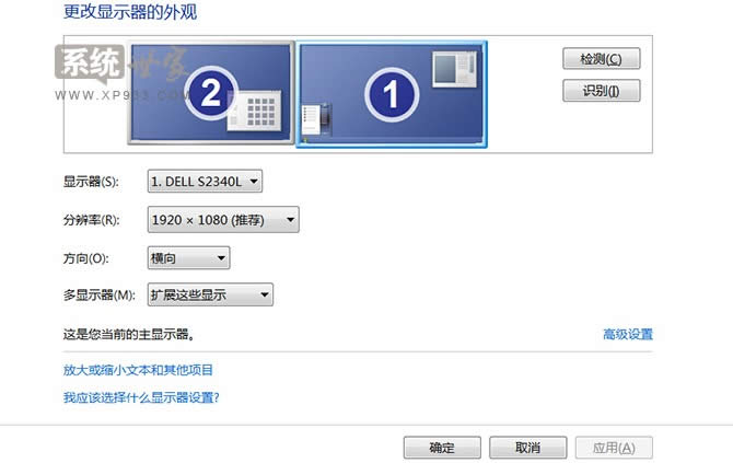 技術員聯盟解決Win7旗艦版分辨率過大導致窗口程序跑到屏幕外方法 2、在打開的屏幕分辨率窗口中,找到并點擊多顯示器后面的下拉按鈕,然后把“擴展這些顯示”修改為“只在1上顯示桌面”,然后點擊確定按鈕;